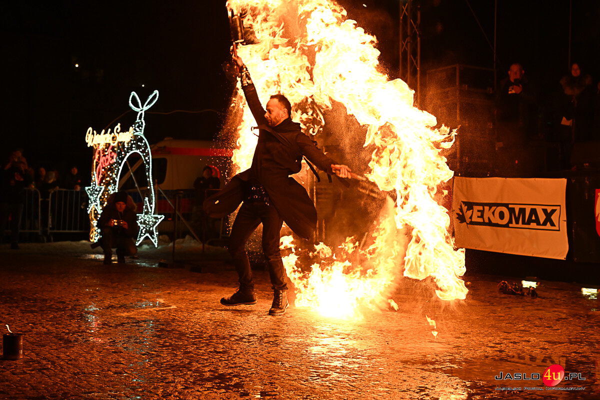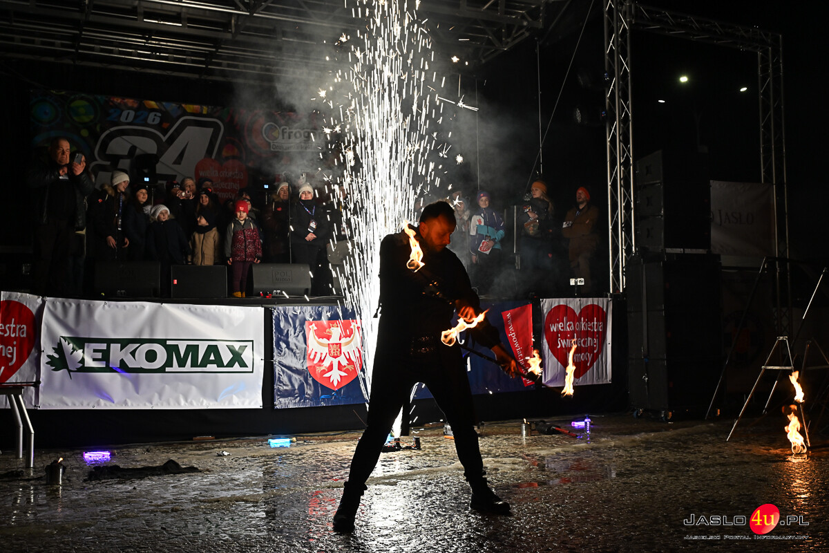 Zamiast klasycznych fajerwerków mieszkańcy obejrzeli spektakl ognia pt. „Symfonia ognia” w wykonaniu Sebastiana „Dotyka” Malickiego. Pokaz łączący ruch, płomień, światło i precyzyjną choreografię stworzył dynamiczne, niemal teatralne widowisko, które przyciągnęło liczną publiczność i stało się jednym z najbardziej zapamiętanych momentów jasielskiego finału WOŚP.
