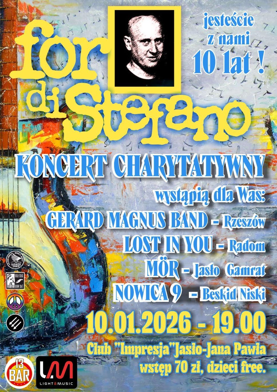 Dziś w Jaśle odbędzie się kolejna edycja koncertu charytatywnego „For di Stefano”. Wydarzenie ma na celu wsparcie leczenia i rehabilitacji Rafała Stefańskiego, który od ponad 10 lat zmaga się z ciężką niepełnosprawnością i nie jest w stanie podjąć pracy.