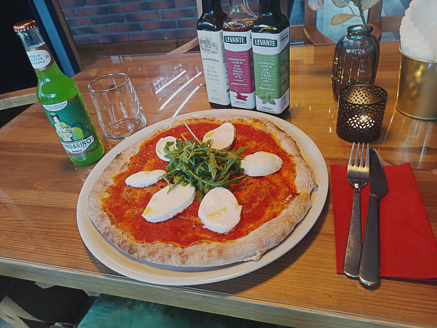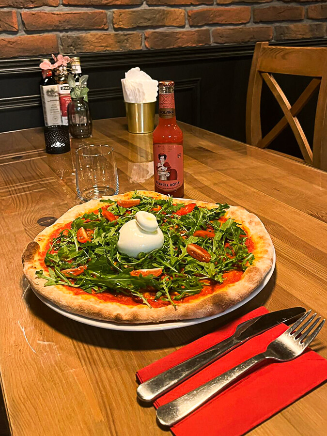 Toskania stawia na autentyczną kuchnię włoską. W menu królują klasyczne pizze wypiekane w piecu opalanym drewnem, makarony, sałatki i desery, przygotowywane na bazie oryginalnych włoskich składników, a także a także włoskie wina i spritze, które dopełniają klimat miejsca. To kuchnia robiona z pasją i doświadczeniem – bez kompromisów jakościowych.