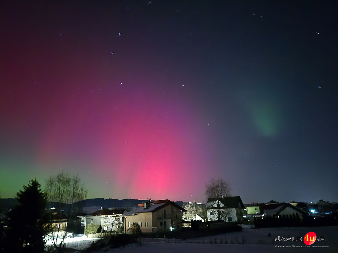 Zorza polarna widoczna nad Jasłem. Niezwykłe zjawisko na nocnym niebie